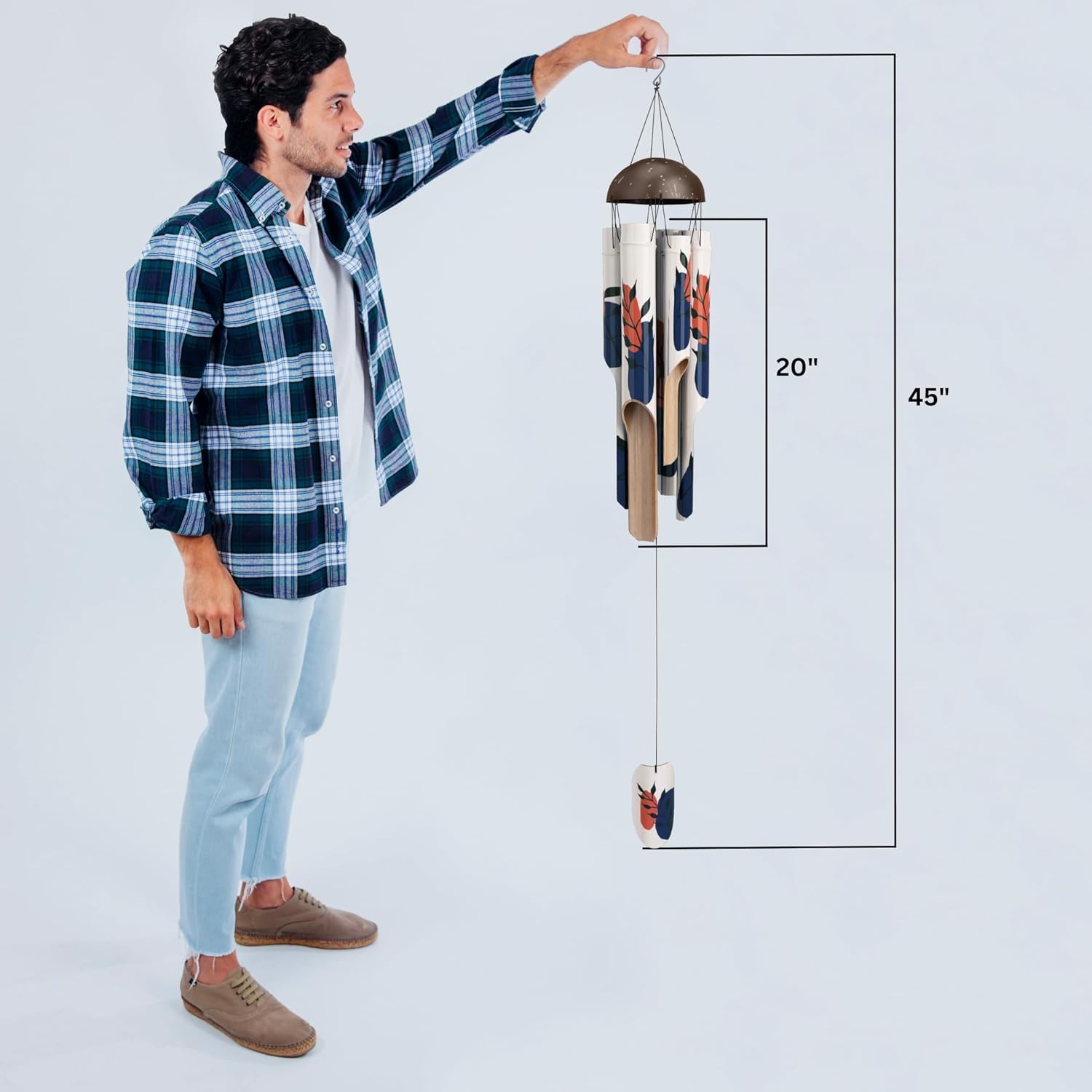 Bamboo Wind Chimes 45" Hand Painted Art Garden Decor Housewarming